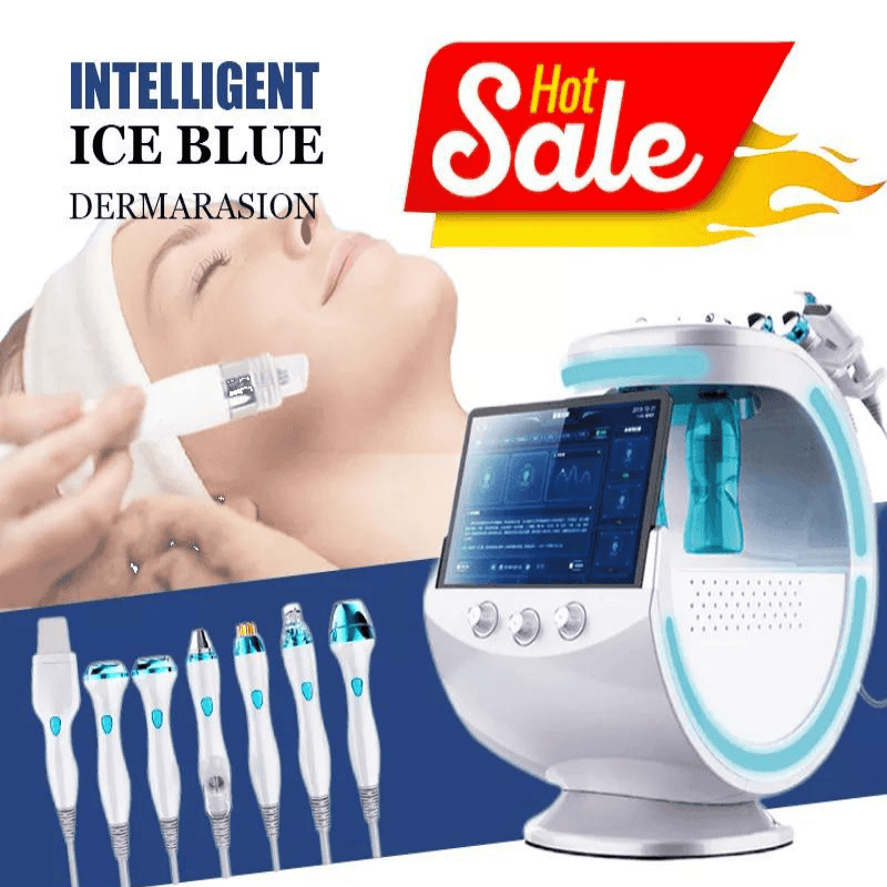 Revolutionize your skincare with the ICE Blue Hydro Facial Machine – Model CP06-7, a premium 7-in-1 beauty system designed for professional and personal use. This advanced device offers complete facial care by removing blackheads, acne, dirt, and impurities, while deeply cleansing the skin for a fresh and radiant look. The ultrasound function enhances product absorption, ensuring serums and creams penetrate effectively for maximum results. It also works to whiten, brighten, and shrink pores, giving your skin a smooth, youthful glow.